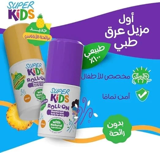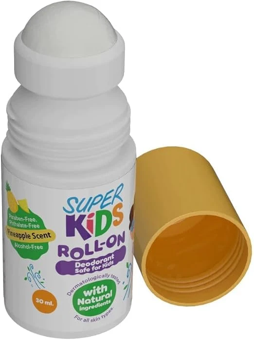 Super Kids Roll-On Deodorant Pineapple Scent (30ml) & Roll-On Deodorant for All Skin Types (30ml) (50% Off on the 2nd Product) - parabens free, aluminum free, alcohol free